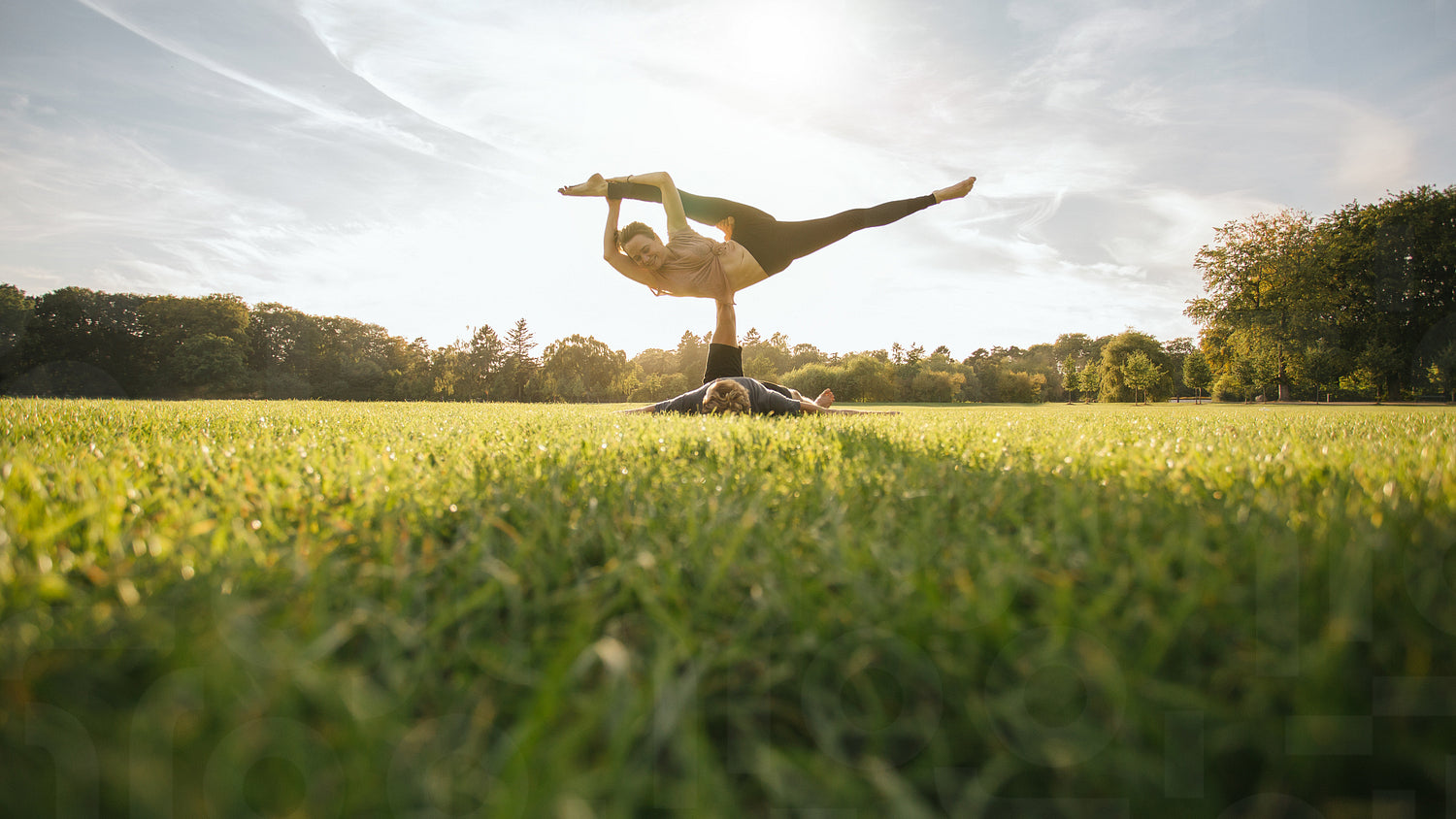 Fit young couple practising acroyoga