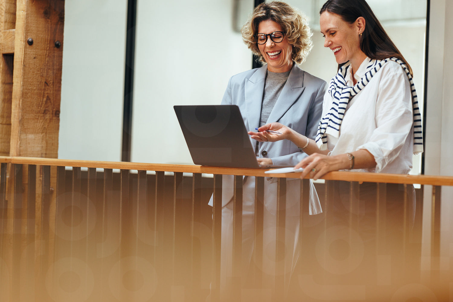 Professional women connect with their team on a video call. Happy business women attending a virtual meeting on a laptop, they smile as they talk about future projects and adventures of their business.