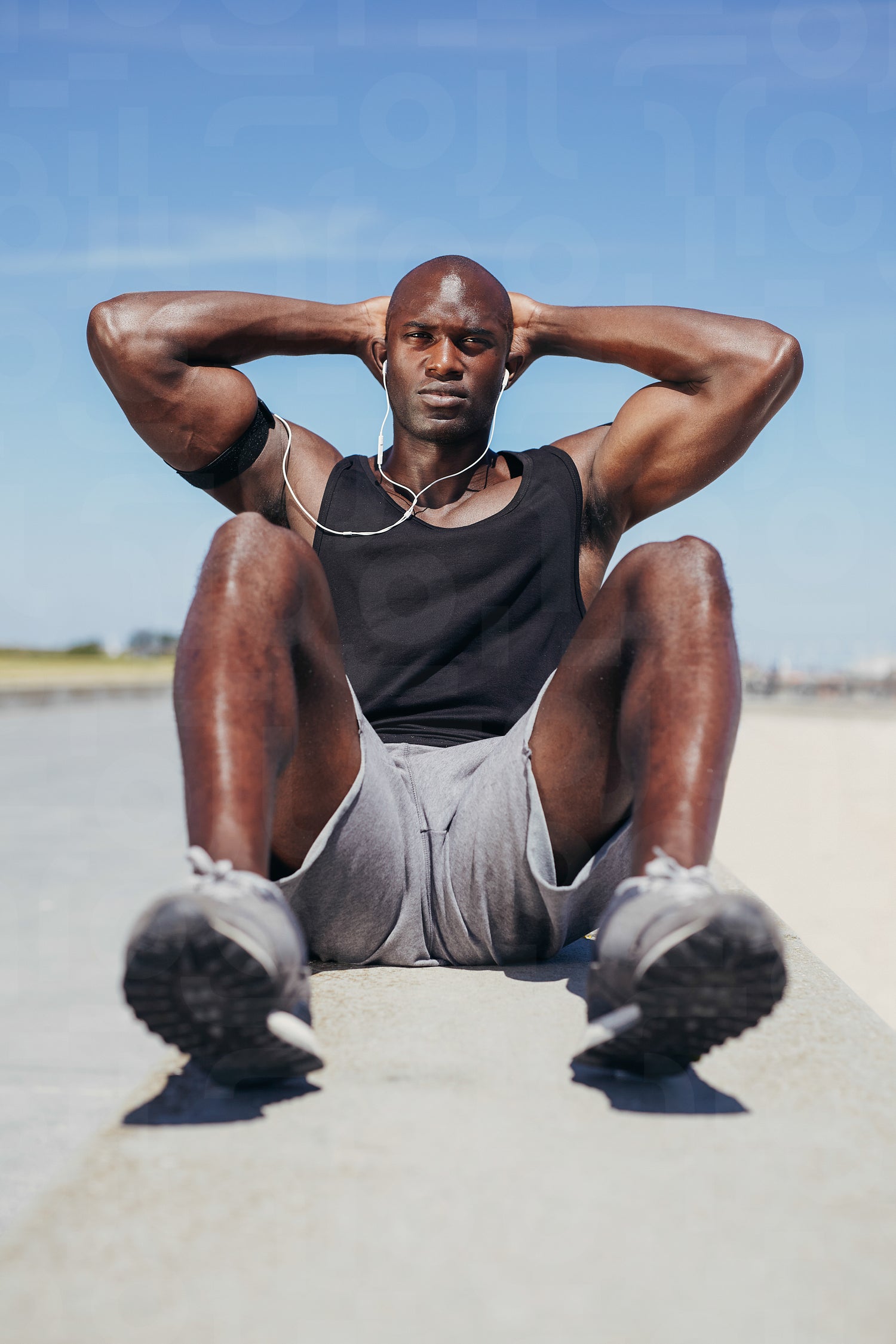African fitness model exercising outdoors.