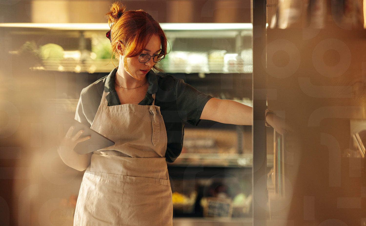 Young supermarket owner taking inventory using a digital tablet in her shop. Young female entrepreneur running her small business using wireless technology.