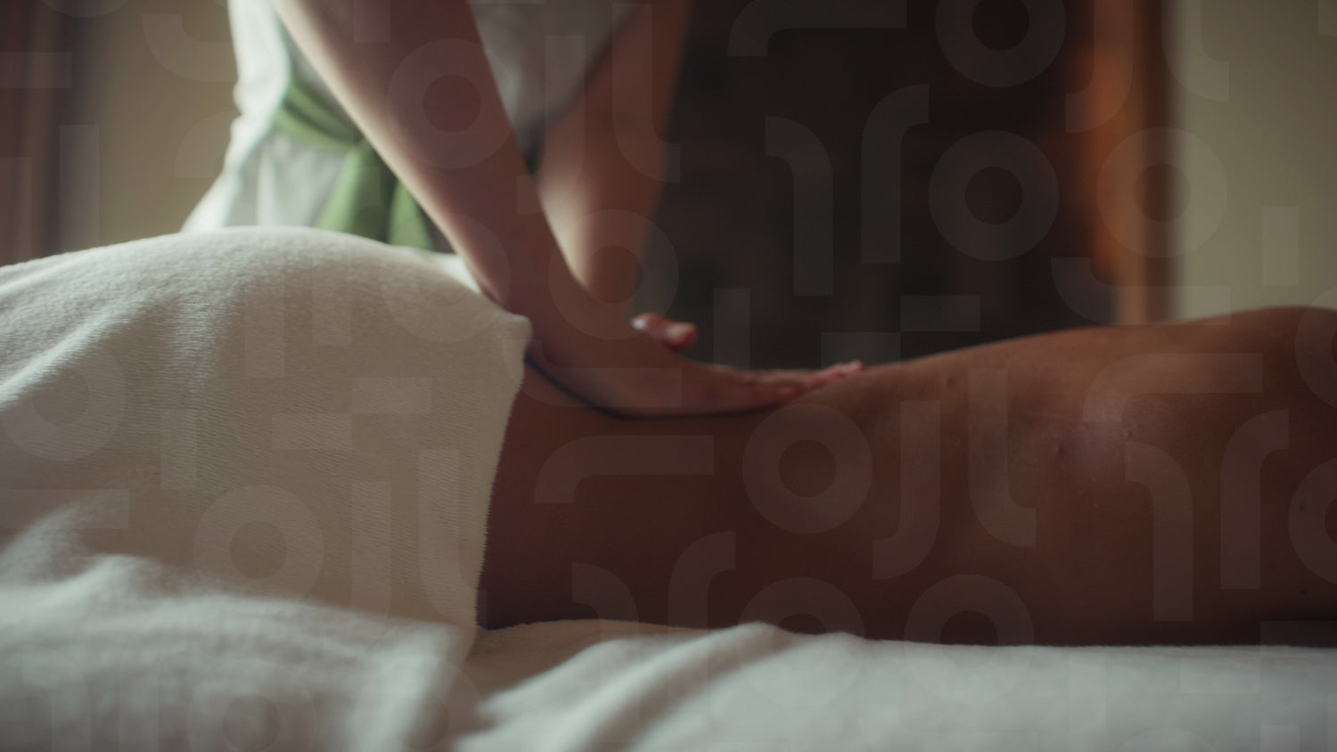 A serene woman enjoys a relaxing back massage, her eyes closed in contentment. The expert hands of the masseuse gently knead her muscles, promoting tranquility and well-being