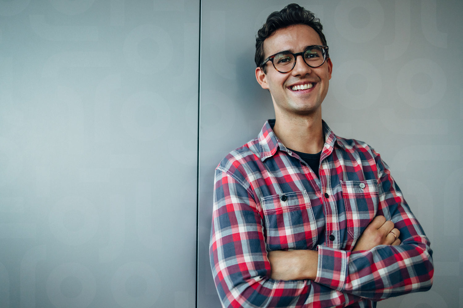 Portrait of a successful young businessman. Business professional in casual looking at camera and smiling.