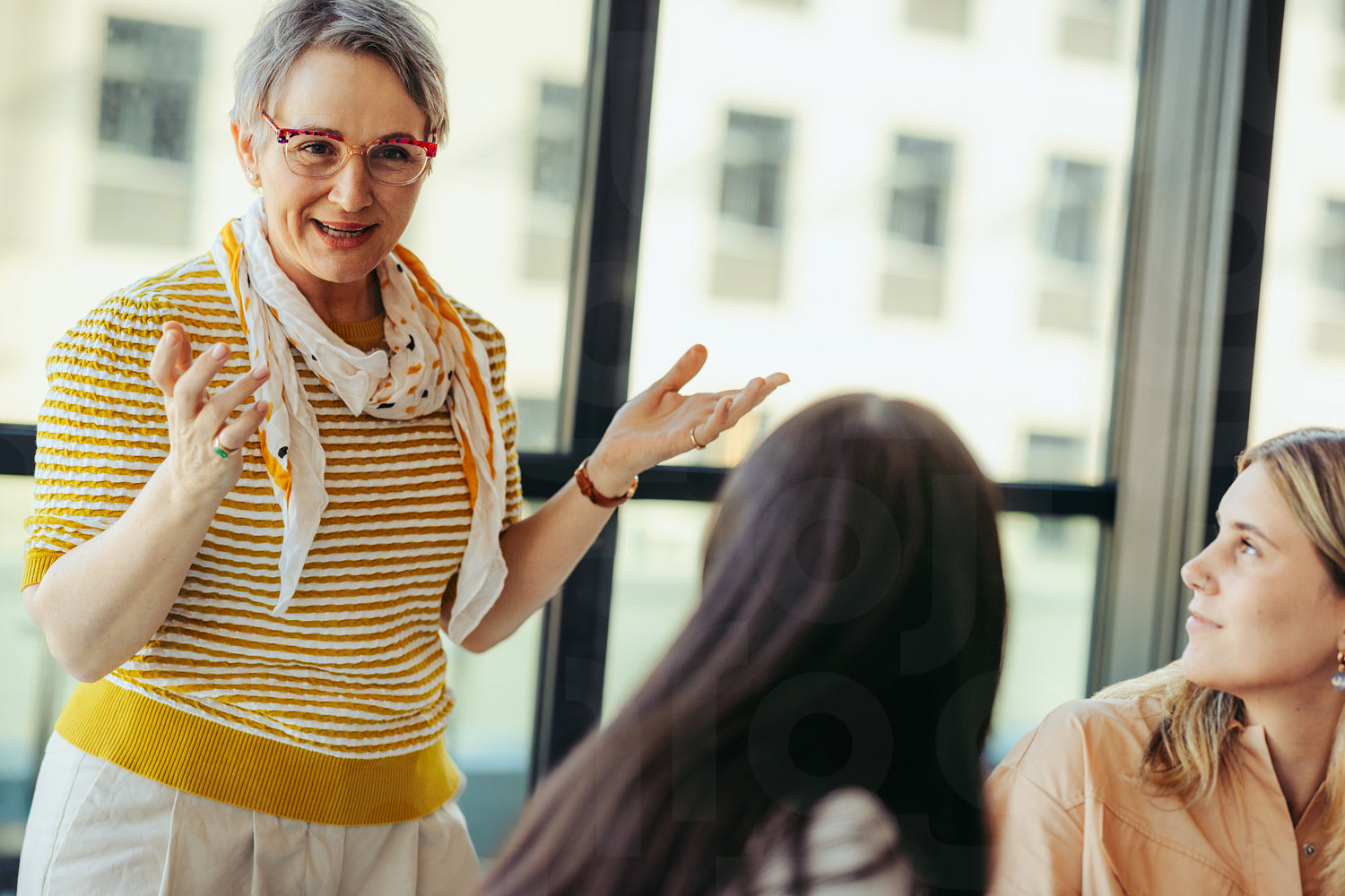 Senior lecturer engaging with college students in a city classroom setting, promoting an interactive and dynamic learning environment for higher education and knowledge sharing
