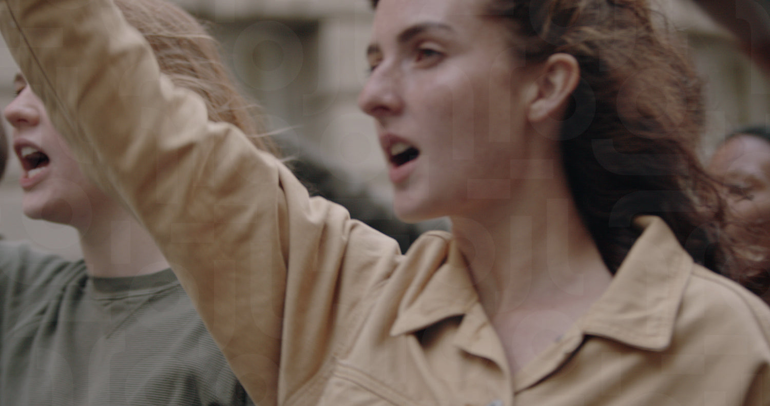 Group of activists giving slogans in a protest march. Youngsters protesting for protection of civil rights.