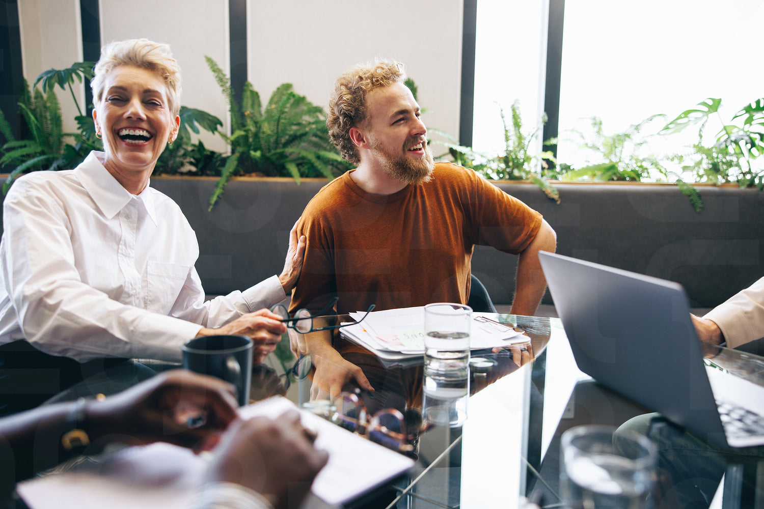 Happy business colleagues engaging in a successful meeting