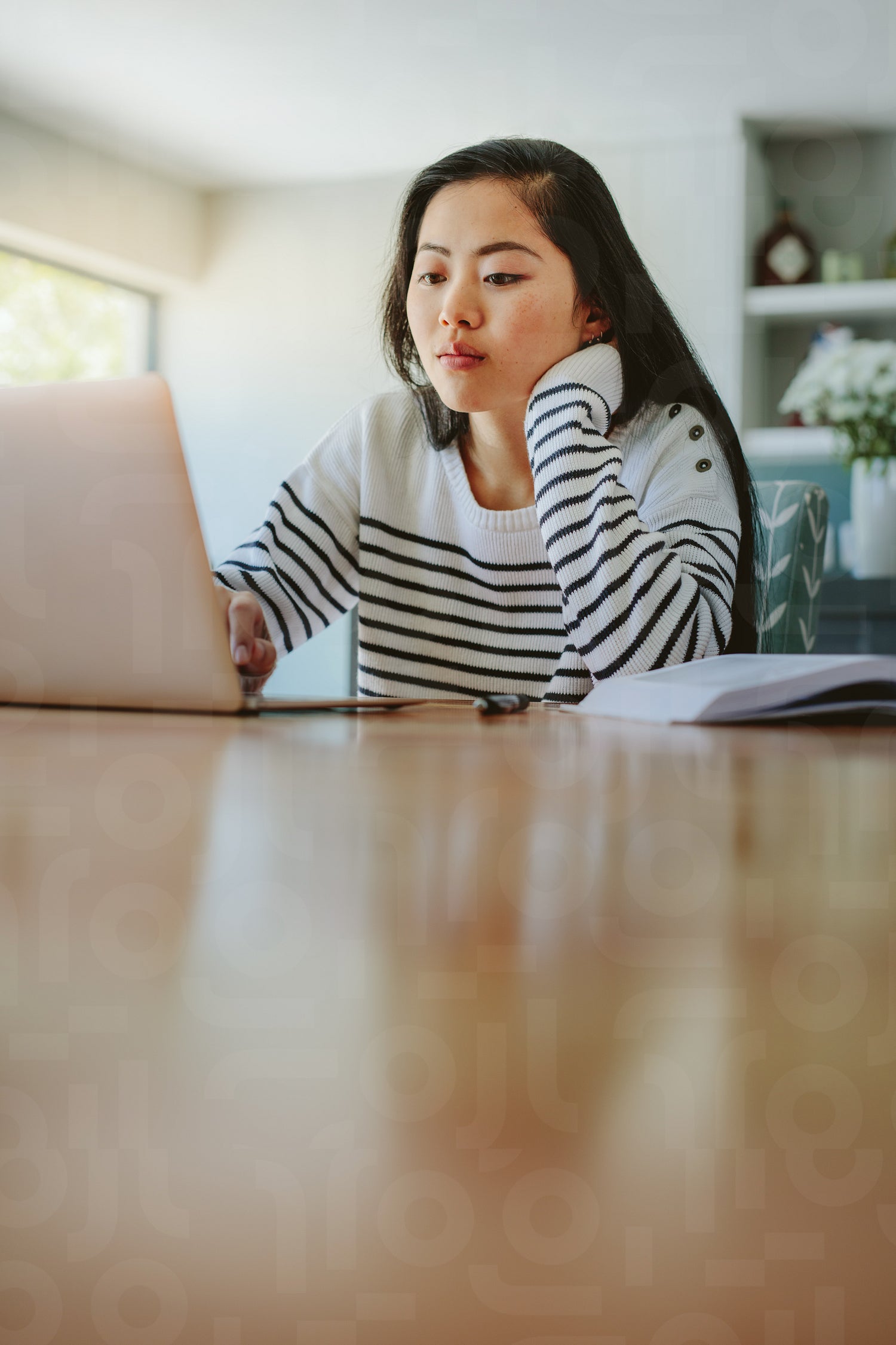 Girl studying at home.