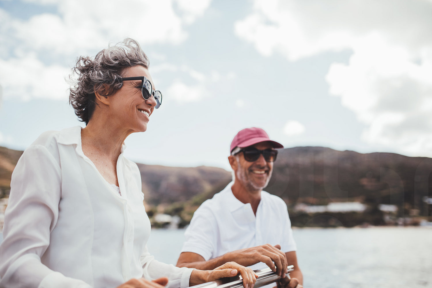 Outdoor shot of mature couple standing on the deck of a boat. Senior couple enjoying a leisurely sail out on the open ocean.