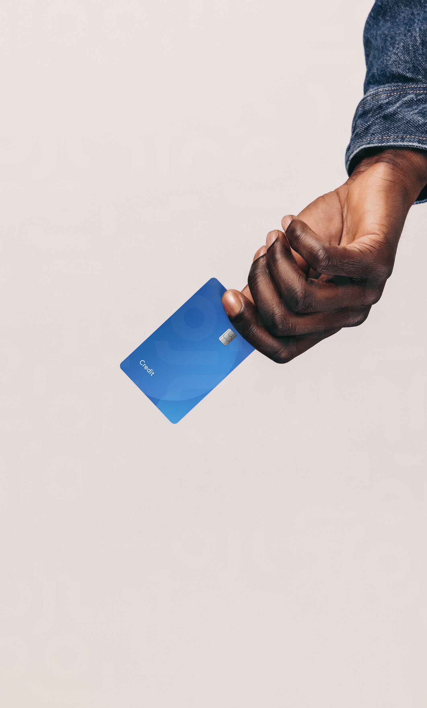 Black man going shopping with a credit card, he holds out his bank card in his hand