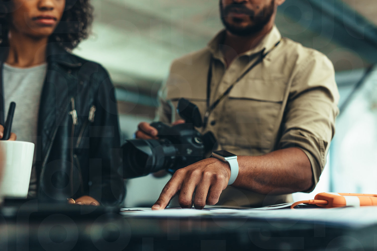 Photographer discussing ideas of photo shoot with a model