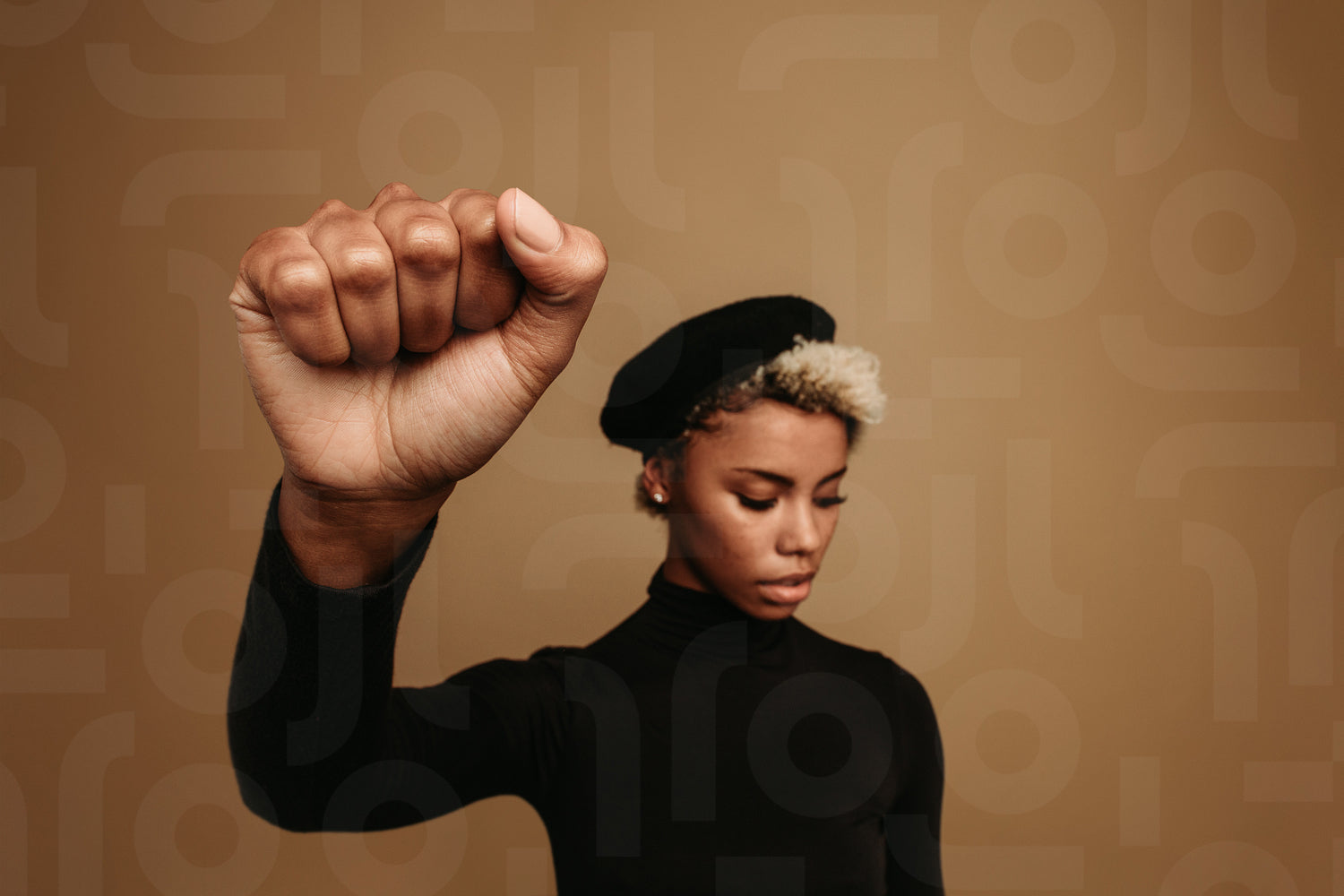 Woman supporting the black lives matter movement with a raised fist. Close up of raised fist of african american woman activist.
