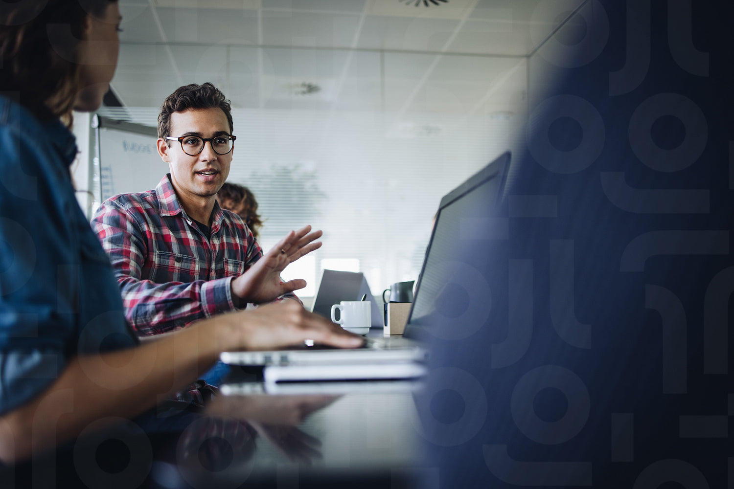 Young businessman discussing new strategies with colleagues in meeting. Business team having a meeting in office boardroom.