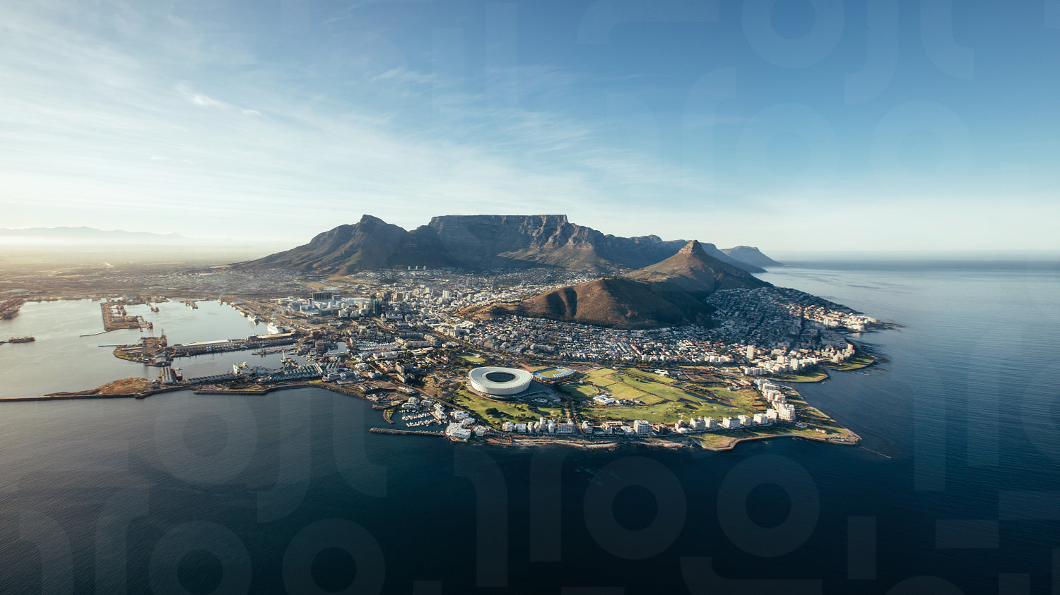 Aerial coastal view of Cape Town. View of cape town city with table mountain, cape town harbour, lion's head and devil's peak, South Africa.