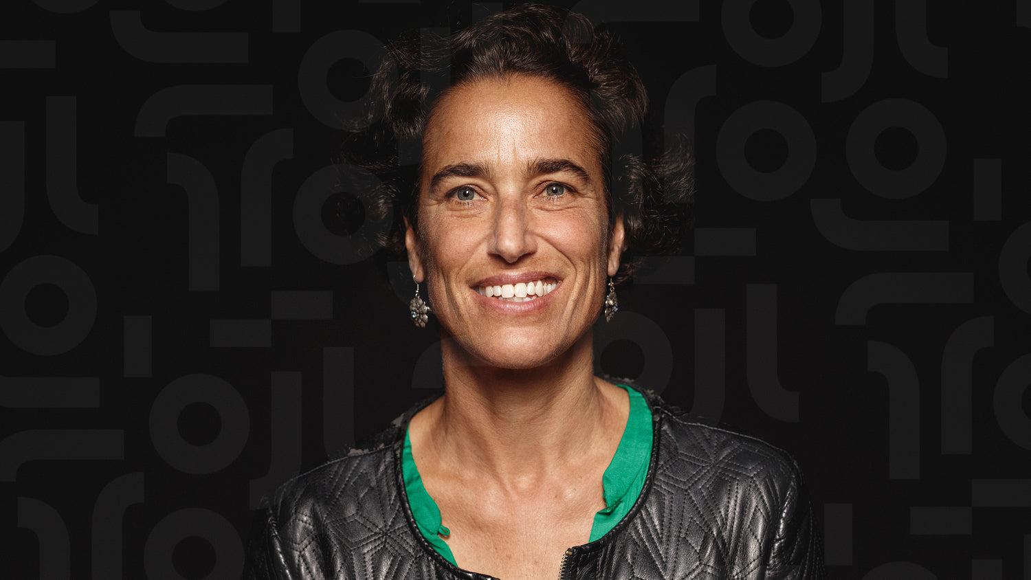 Close up of a smiling woman with short hair isolated on black background. Portrait of a smiling woman looking at camera.