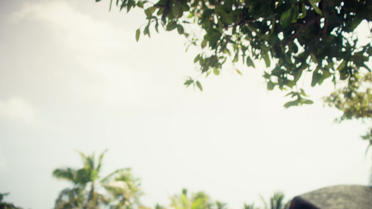 Smiling mother and daughter receive tropical coconut drinks from attentive resort staff by the pool