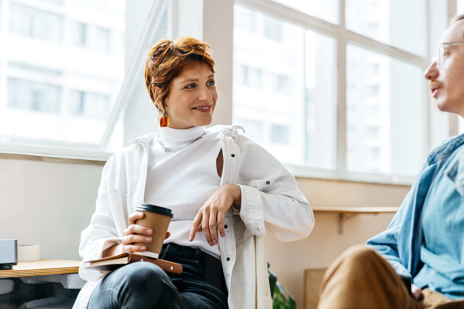 A pair of colleagues engaged in a productive work session at a co-working space, exemplifying teamwork, sharing ideas, and enjoying a modern freelance environment.