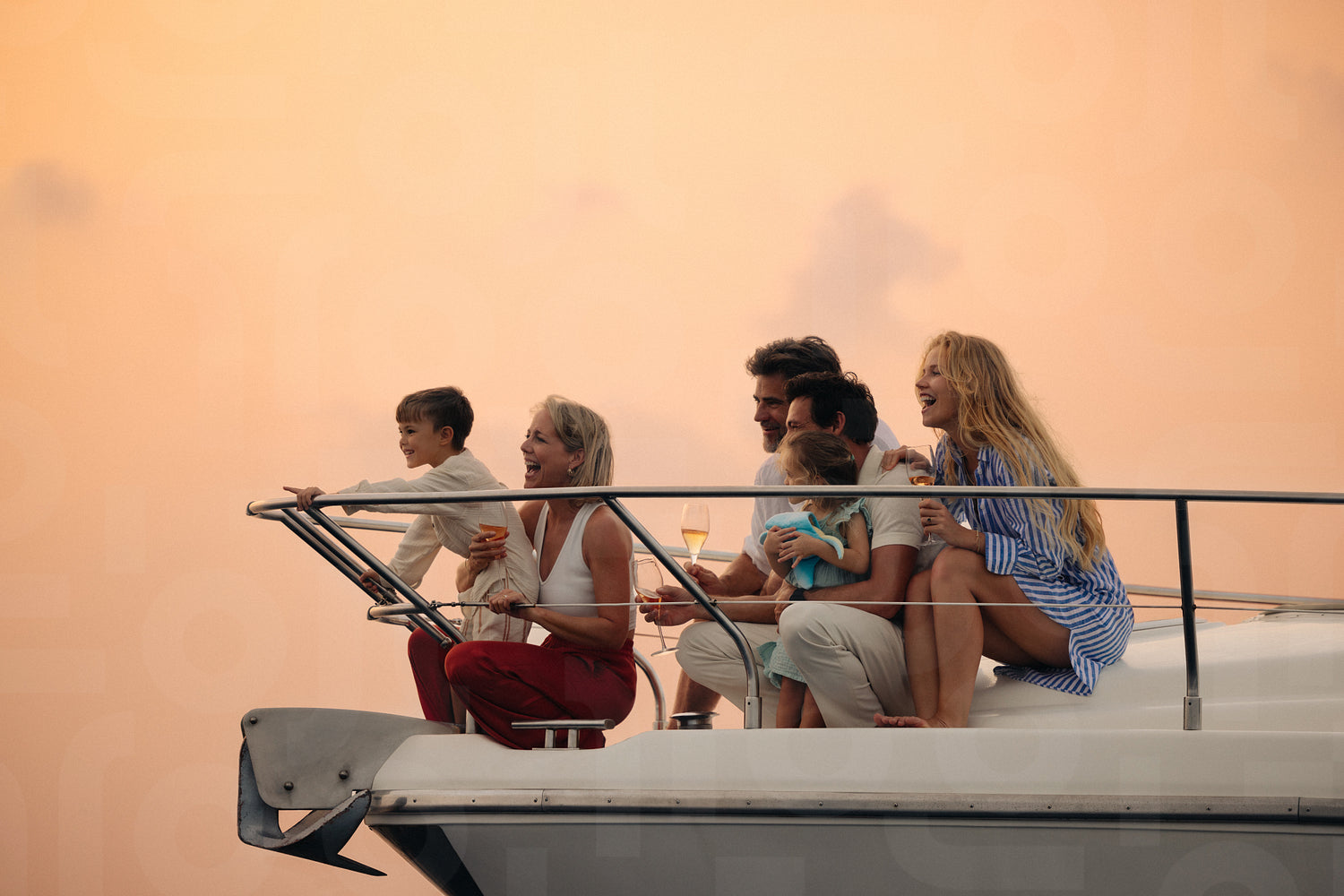 A joyful family enjoying a sunset vacation on a yacht, sharing moments of happiness, laughter, and togetherness