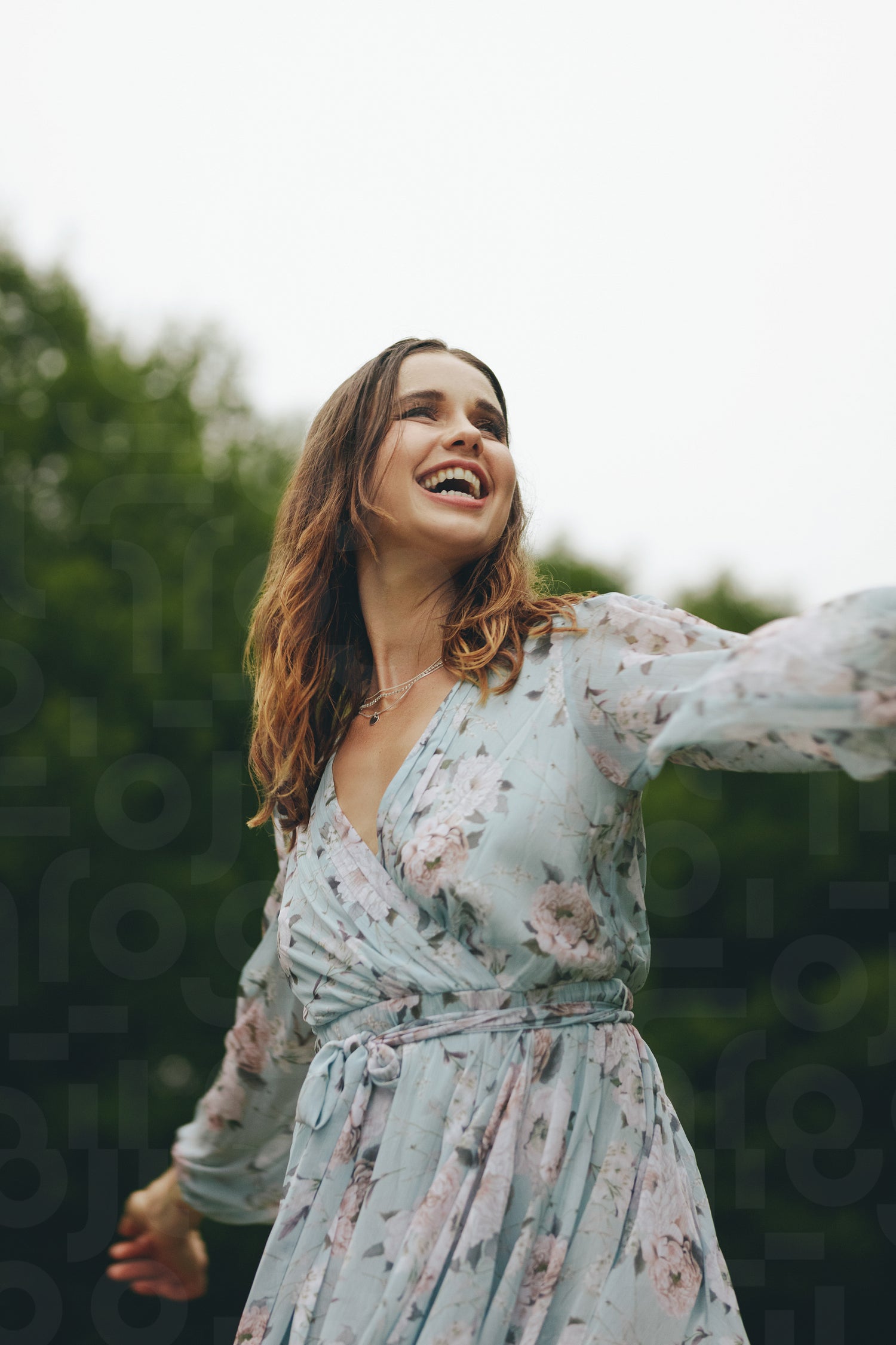 Pretty girl in casuals dancing at the park. Beautiful woman having a great time outdoors.
