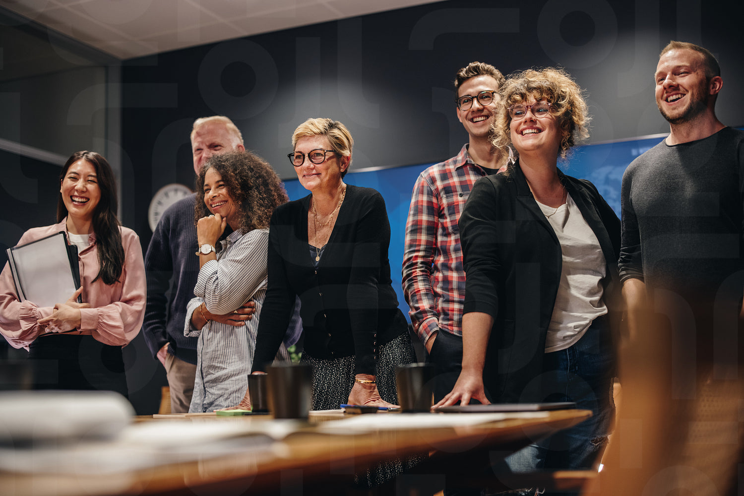 Team of male and female professional standing together. Business group in meeting room standing for a portrait.