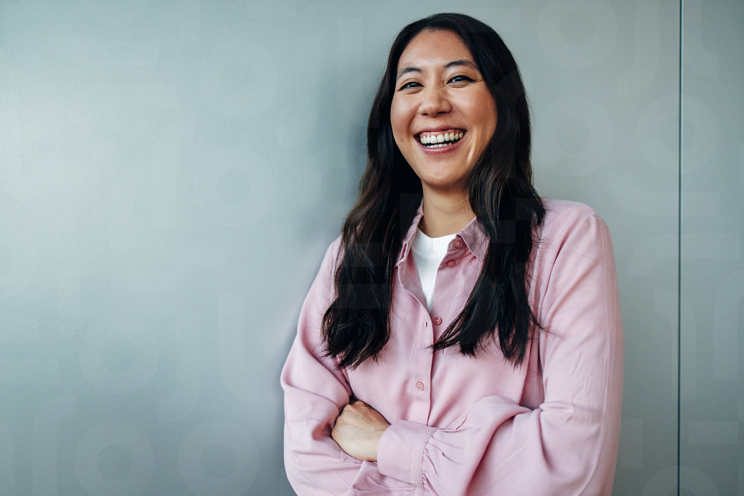 Portrait of a positive young businesswoman. Female professional looking at camera and laughing.
