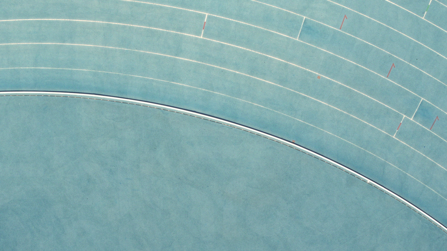 Aerial view of proud athlete doing a victory lap with flag on racetrack. Top view of sportswoman running on racetrack with national flag after the winning the race.