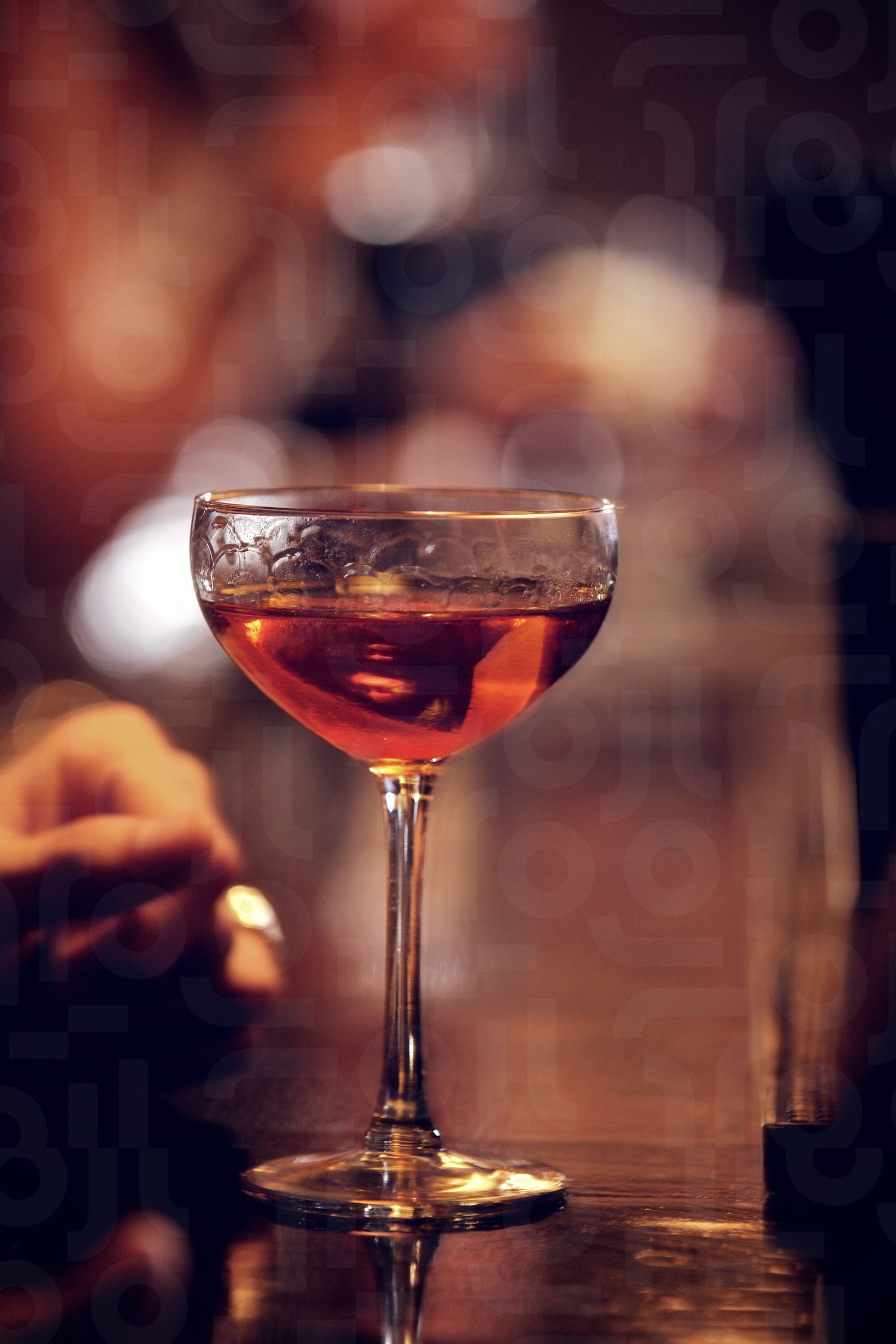 Glass of sparkling red wine on the bar's counter