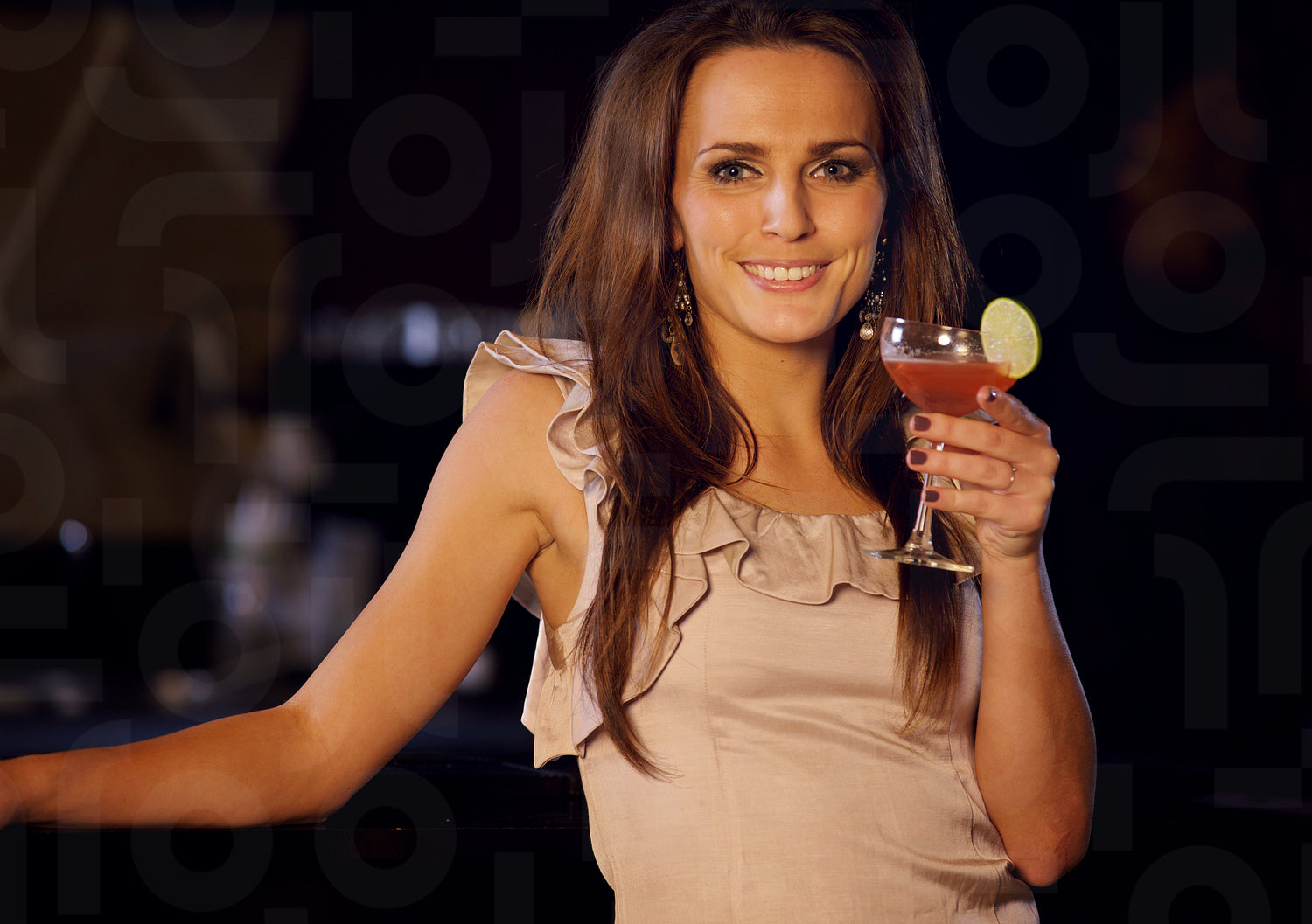 Party woman at the bar with a glass of wine