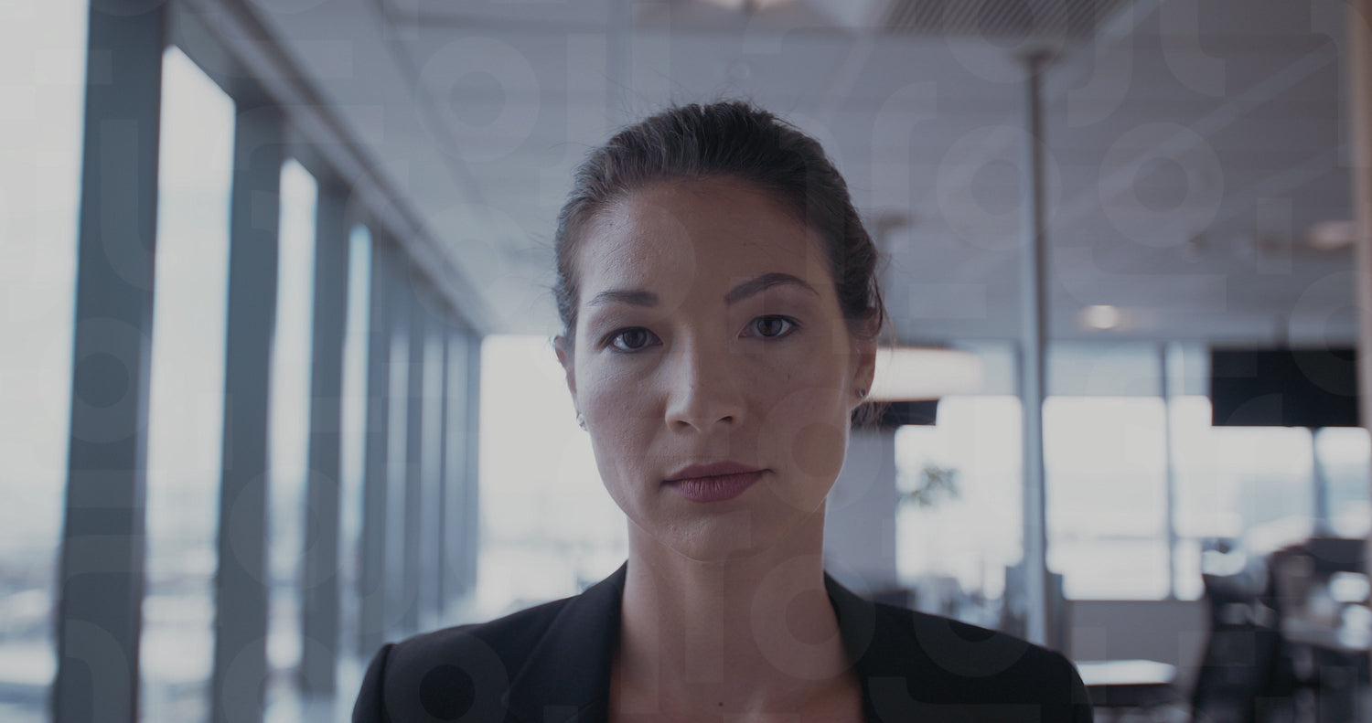 Beautiful young business woman smiling in office. Female executive looking at camera.