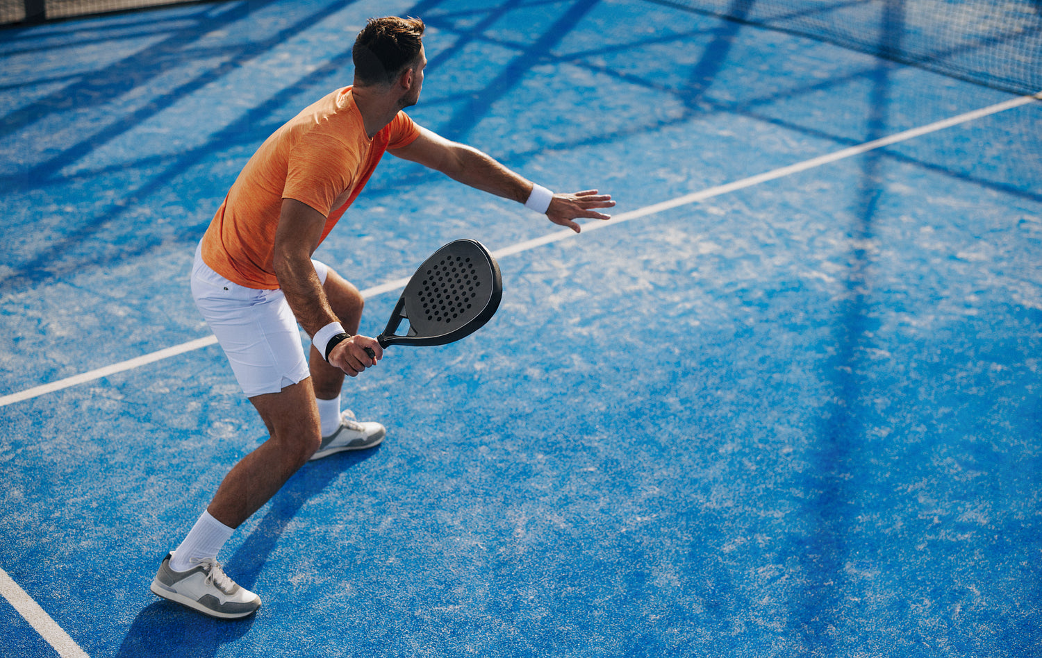 Competitive padel athlete playing with exceptional footwork on the court