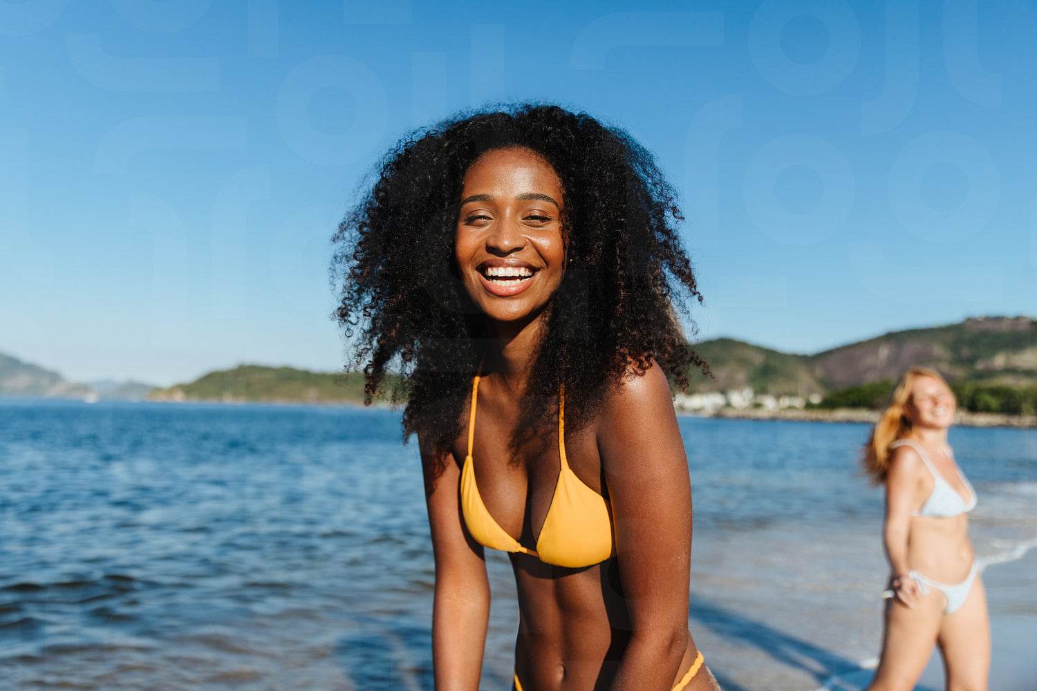 Youthful joy on a summer vacation with friends at the beach, enjoying the sun and ocean
