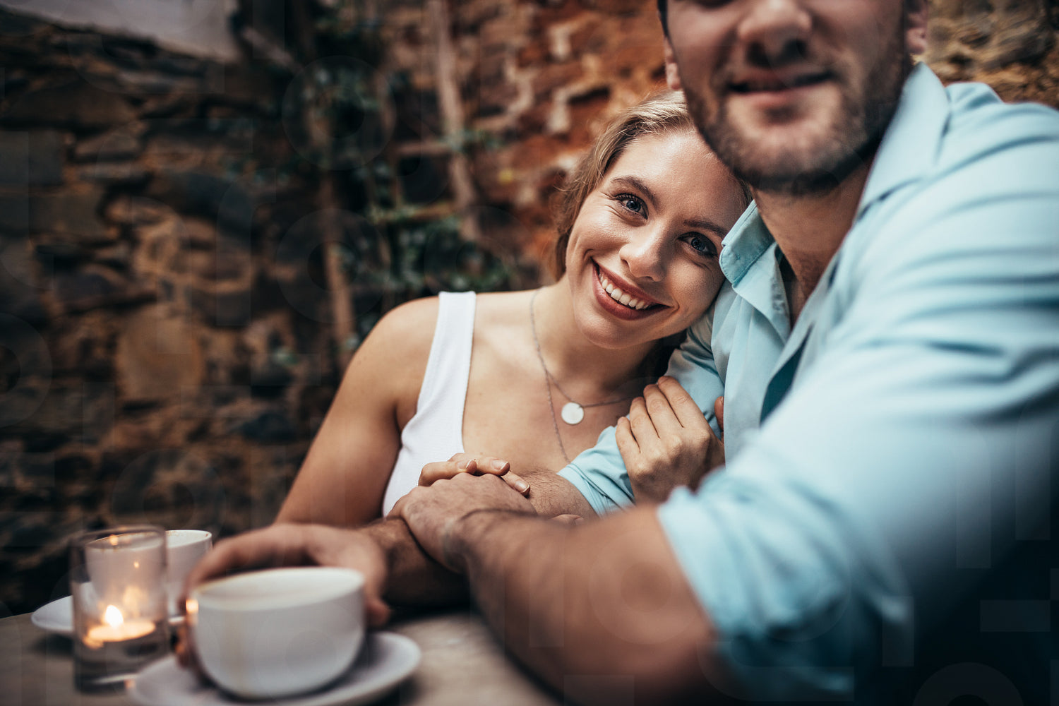 Romantic couple on a date sitting in a restaurant