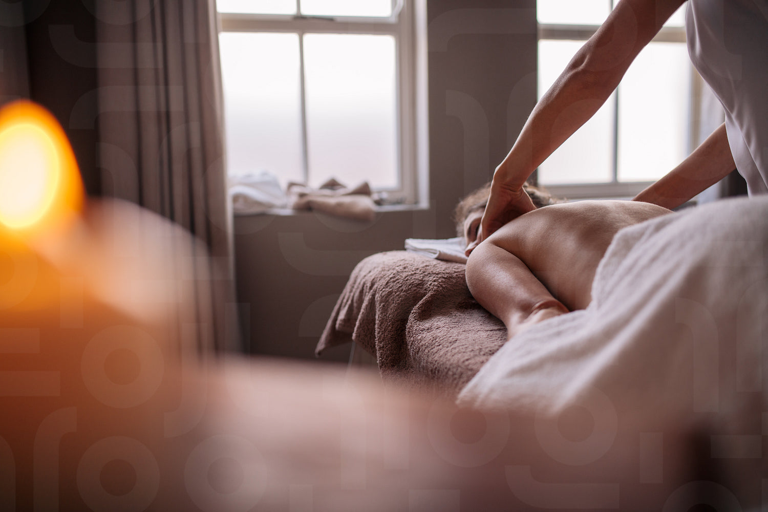 Woman receiving shoulder and back massage at wellness center. Female having relaxing massage on her body in spa salon.