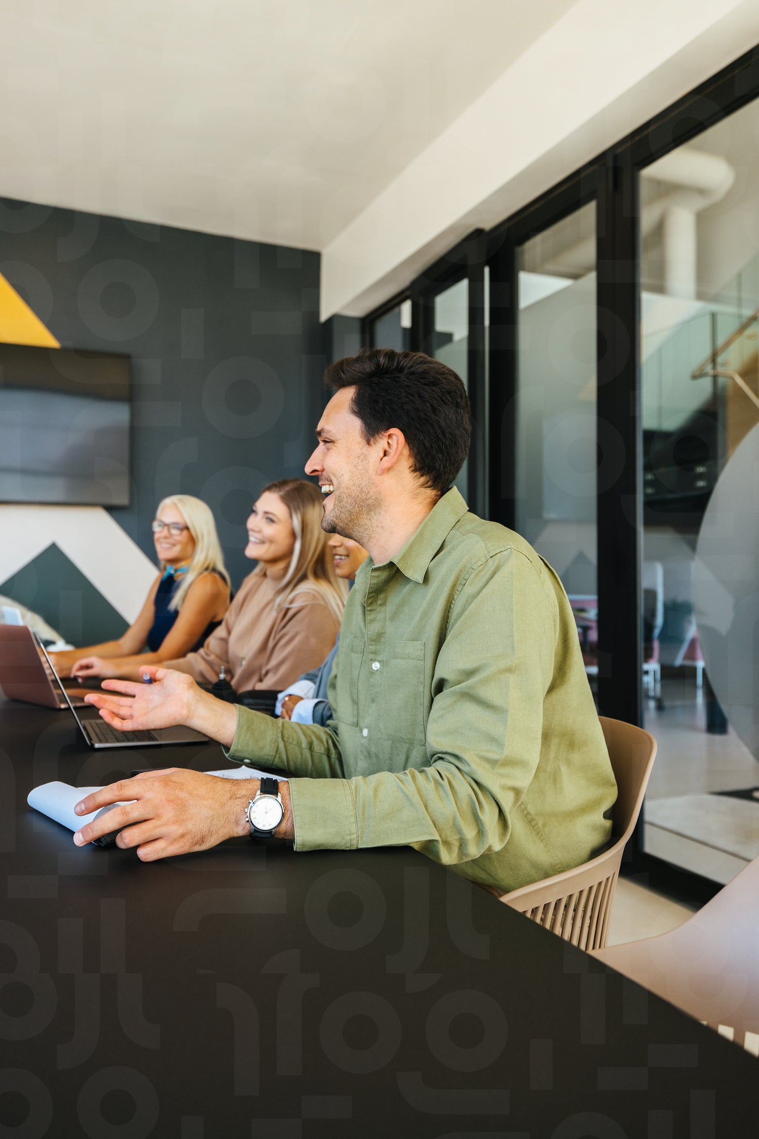 A team of young men and women gathers in a boardroom, engaging in productive discussions, fostering a collaborative environment and exchanging innovative ideas for a project.
