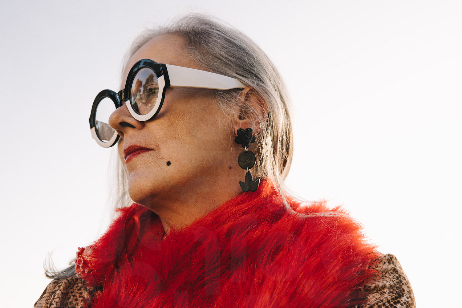 Pensive senior woman looking away while standing outdoors. Stylish elderly woman wearing colourful casual clothing and eyeglasses. Mature woman reflecting on memories of the past.