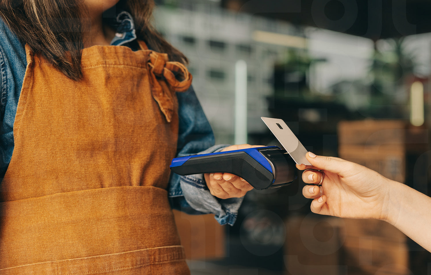 Customer paying her bill using a credit card