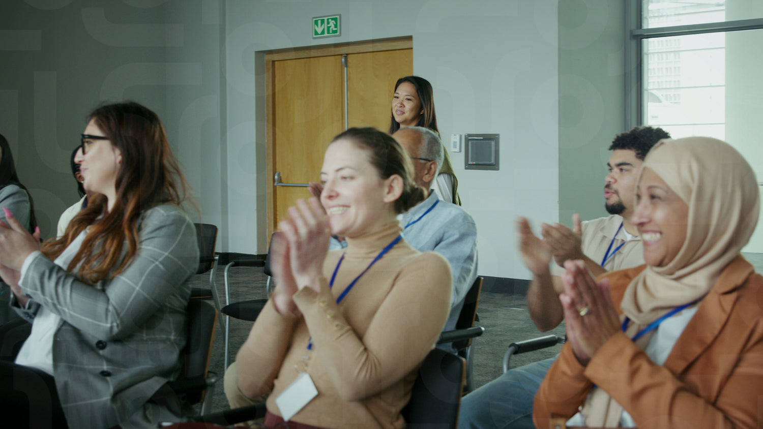 Diverse professionals applaud a speaker during a business conference meeting. An appreciative audience shows support and enthusiasm, celebrating achievement and collaboration in a dynamic environment.