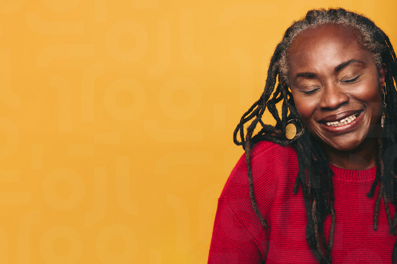 Black woman with dreadlocks smiling with her eyes closed