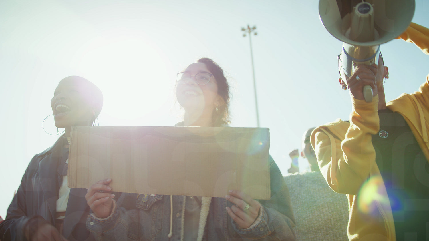 People protest passionately with megaphone
