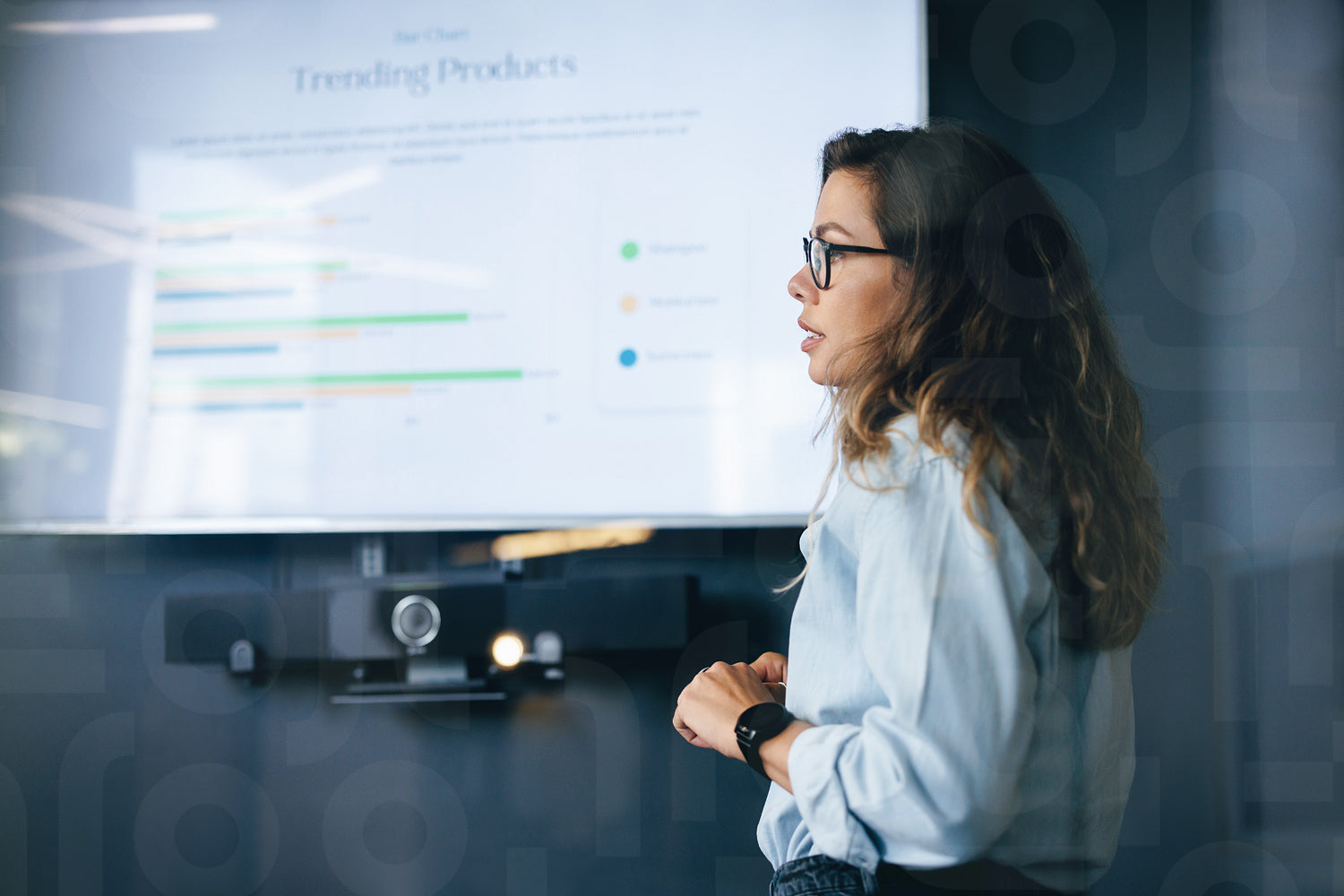 Product manager presenting a report on trending products in a business meeting