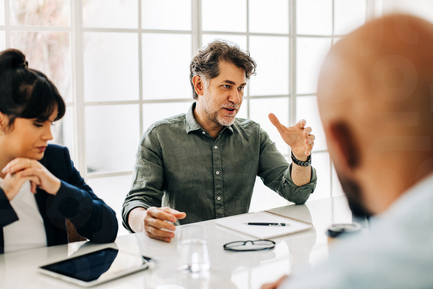 Senior man having a discussion with his team in an office