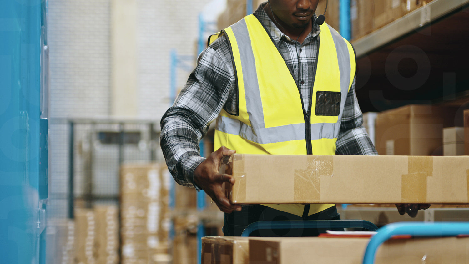 Voice directed warehousing: Warehouse worker uses a headset to pick orders for shipping