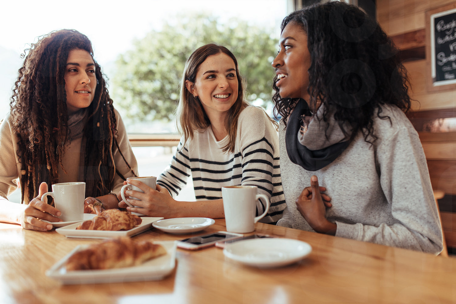 Friends sitting in a cafe and talking