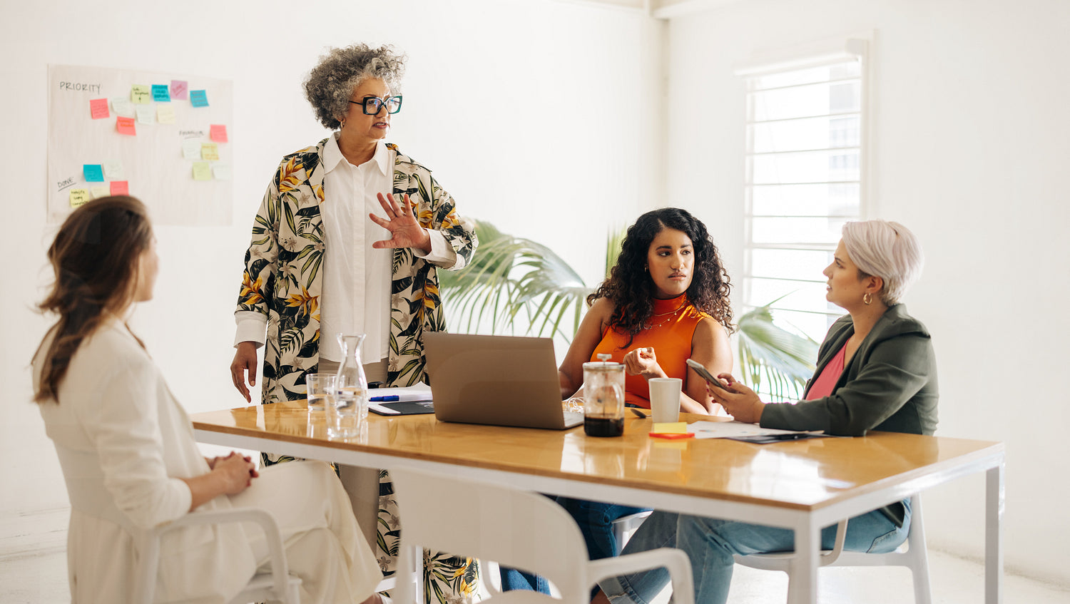 Diverse businesswomen having a discussion during a meeting. Group of female entrepreneurs sharing creative ideas in a boardroom. Multicultural businesswomen working together in an all-female startup.