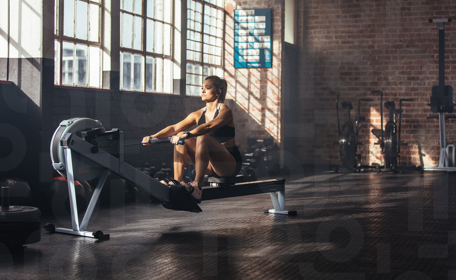 Woman doing muscle training at the gym. Athlete working out at the gym by pulling weight.