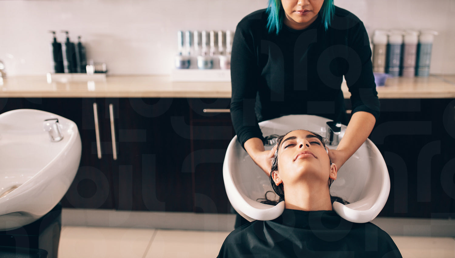 Hairdresser giving hair wash service to a customer at the salon. Woman getting hair care treatment done in a beauty salon.