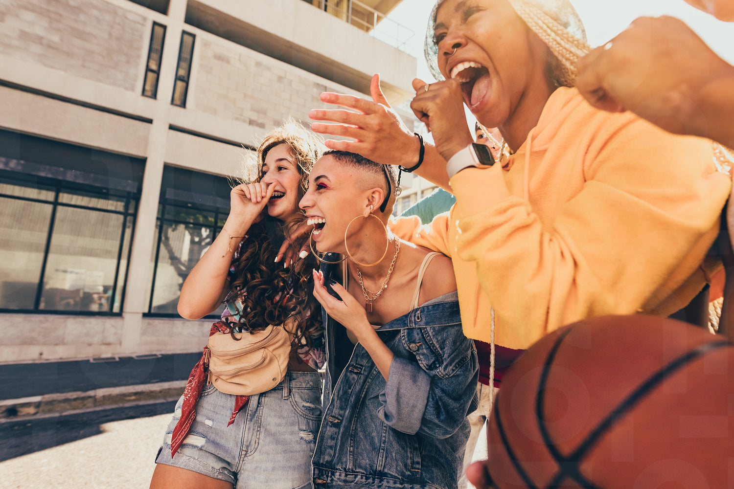 Friends laughing together outdoors