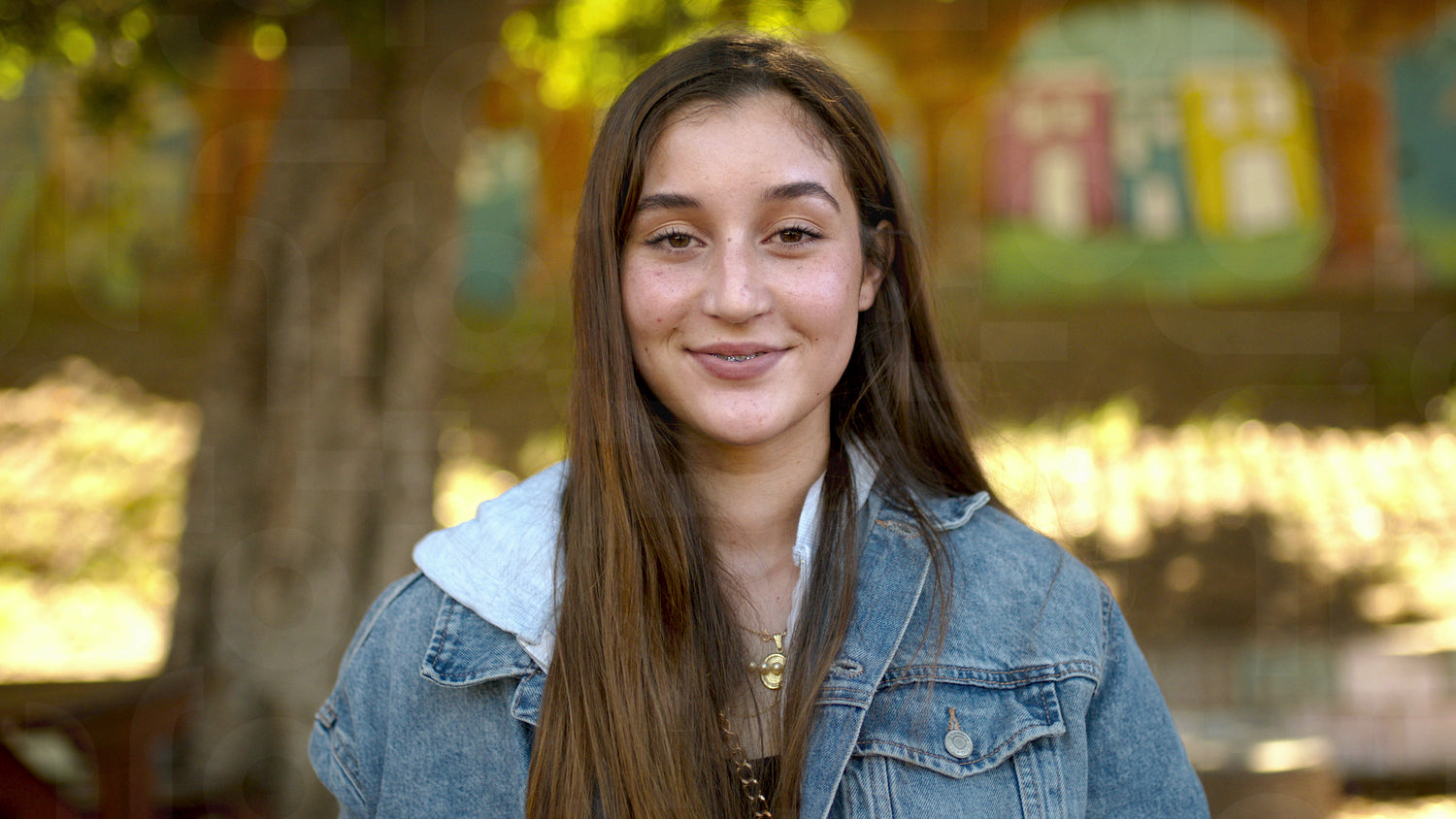 Portrait of a good looking teenage girl with braces standing outdoors. Girl standing outside looking at camera and smiling.