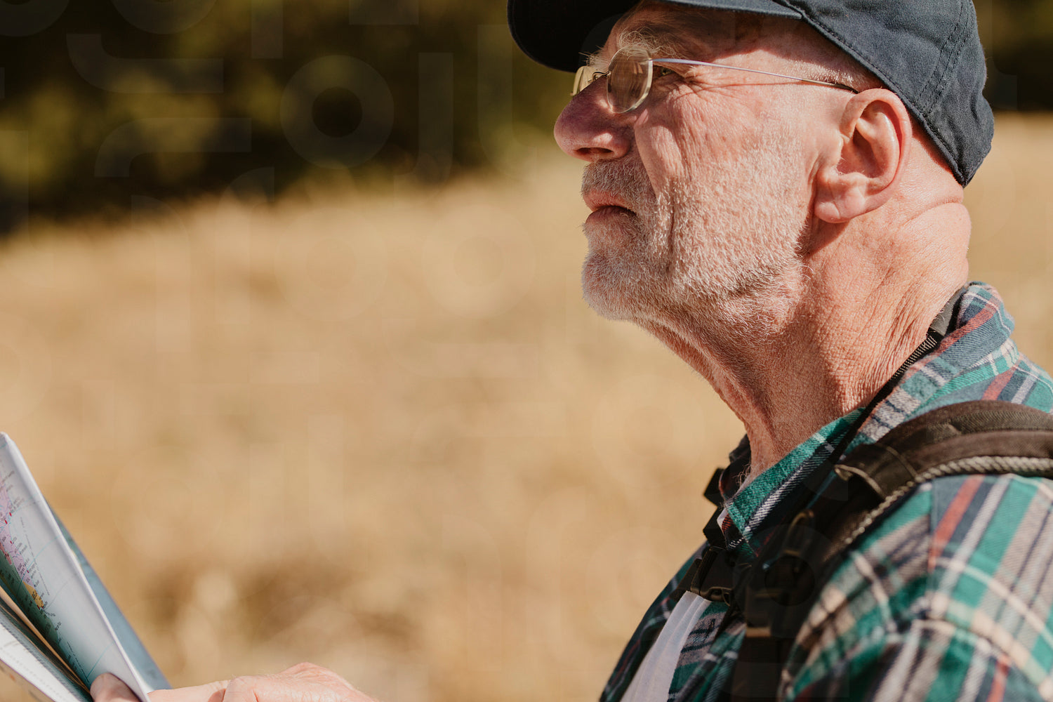 Senior man with a map looking for the directions. Fit old man on a hiking trip using map to find directions.