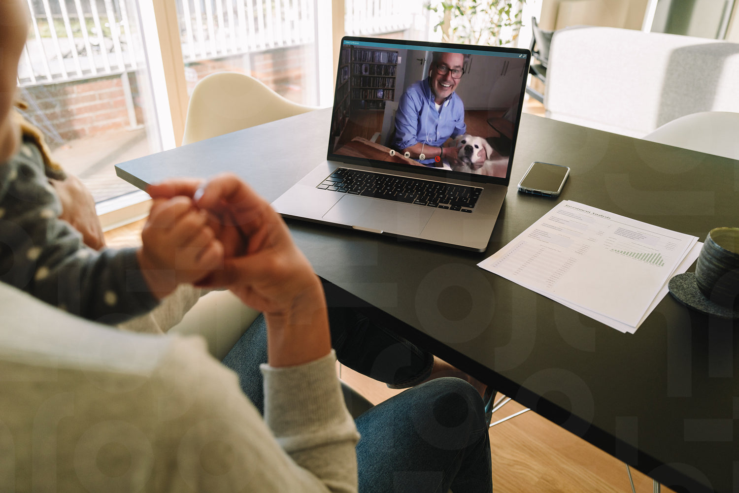 Woman with her child having video call with her father. Woman connecting with her father on a video call while at home.