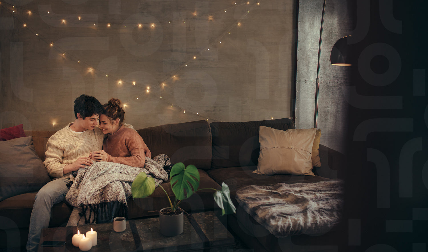 Couple relaxing on couch in hygge house