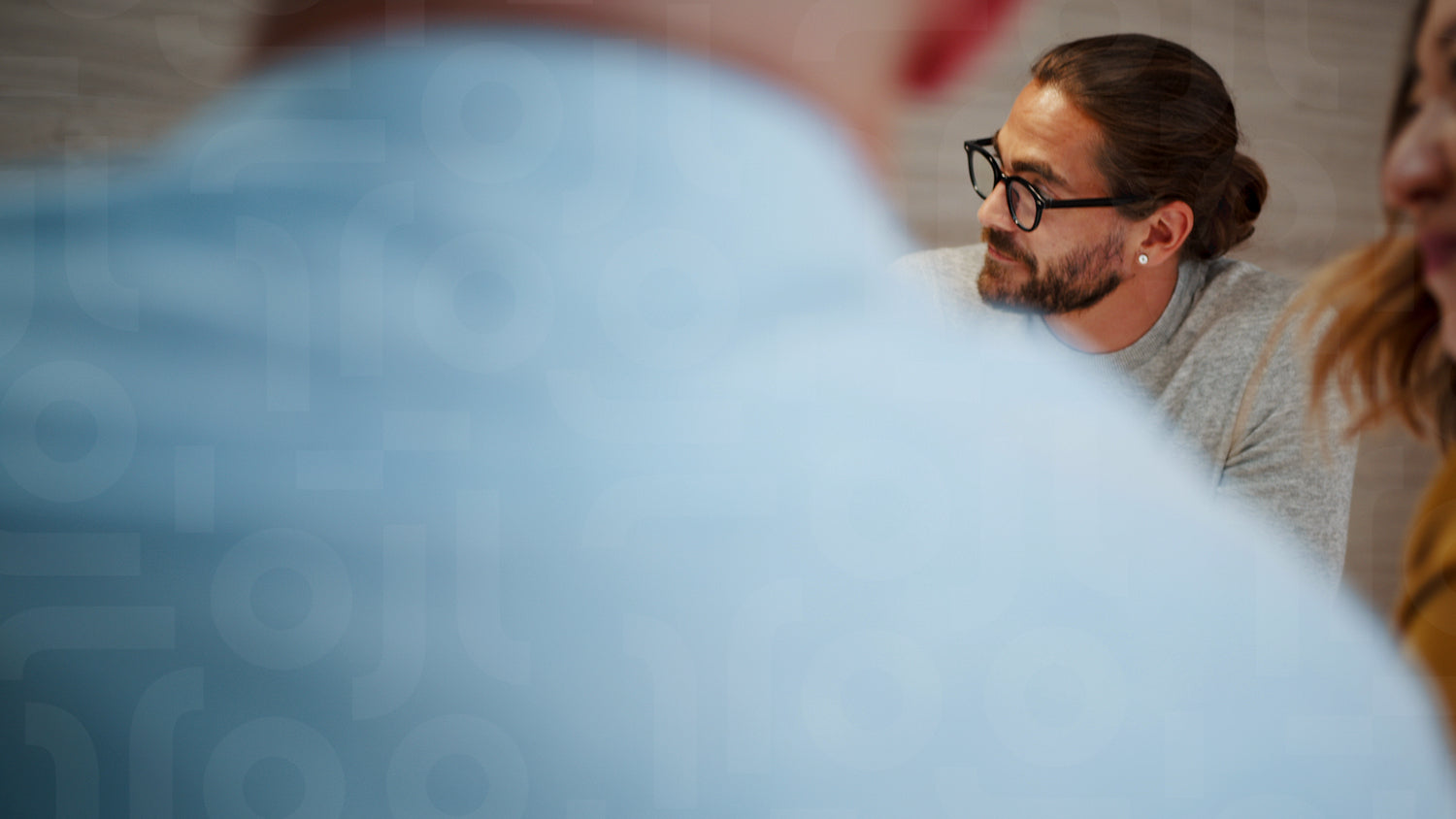 Happy female designer having a laugh with her team as they review blueprint drawings in a meeting. Group of creative business people collaborating on an industrial design project.
